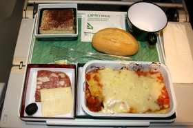 Obed v ekonomickej triede, let Milano (MXP) - Tokyo (NRT)