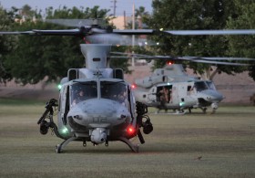 Bell UH-1Y Venom od HMLA-269 "Gunrunners" HF-23 MCAS New River, NC při nacvičování evakuace obyvatel v Yuma, Arizona.