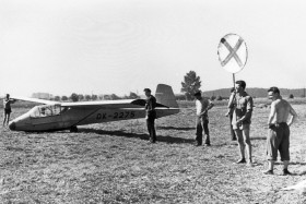 Klasika plachtařiny v 50-tých letech na letišti v Nymburce. Foto O.Syrový.