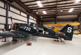 Harvard MK IV, patřící R & L West Group LLC, na "roční" inspekci v restaurátorské dílně GossHawk Unlimited, dílna je opravdovou klenotnicí. Kromě letadel na snímku se v současné době nachází v dílně Douglas A-20 Havoc, T-28, Nakajima Ki-43-IIIa Hayabusa a Messerschmitt Bf 109 (replika).