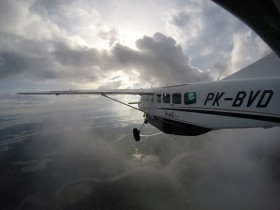 Poslední odlet dne z letiště Tarakan do asi 25 minut vzdálené osady Malinau (sever indonézské části Bornea - Kalimantan)