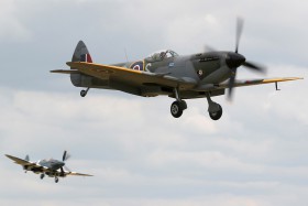 Air Marshal Cliff Spinks, jehož iniciály nese i Spitfire TD248, přistává v závěru Flying Legends 2006. Cliff Spinks létal s jiným Spitfirem, MH434, i u nás na Aviatické Pouti 1998. V pozadí je Spitfire PS890.