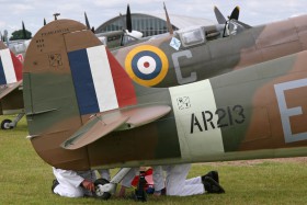 Výměna ostruhového kola u Spitfiru AR213.