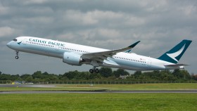 Nejnovější 350ka ve flotile Cathay Pacific. V Hong Kongu přistála 10. července po dodávacím letu z Toulouse. Dublin byl teprve její druhou destinací po Melbourne.