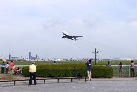 Popular spotting location Sakura no Yama park is located near the threshold of runway 16R. The vendor machine with drinks as well as the toilets are available.